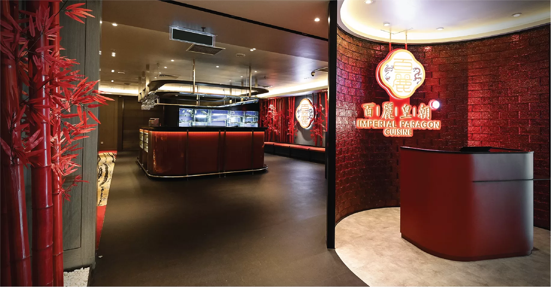 Transforming a hotel hall into a Chinese seafood heaven. Imperial Paragon is a seafood restaurant seamlessly integrated into the heart of a hotel. This unique project involved the transformation of a hotel hall into a culinary heaven, marrying the elegance of the hotel setting with the bold flavors of Chinese cuisine.