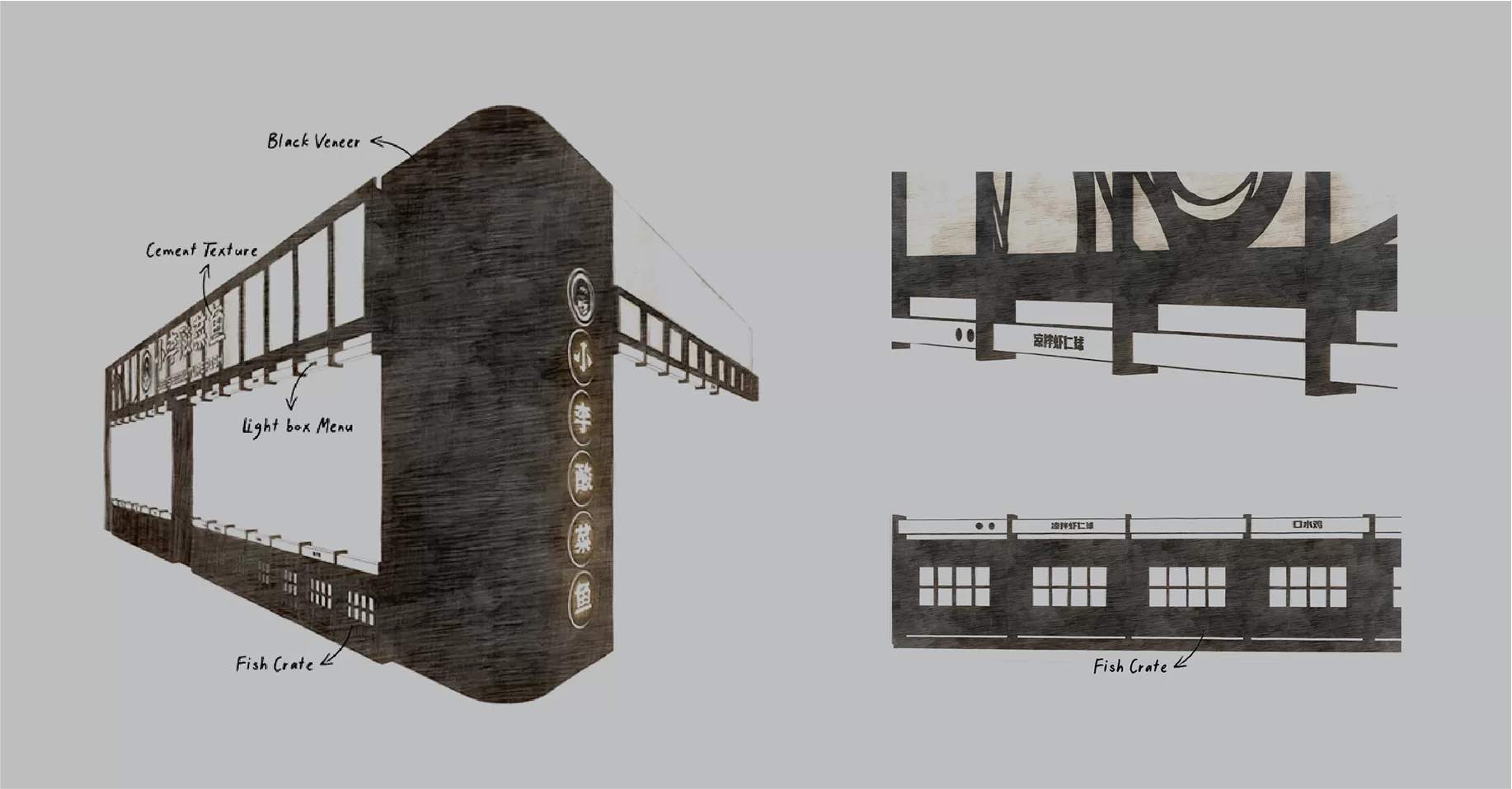 The story of Lee's Signature Fish begins at the very entrance, where the façade beautifully blends the charm of tradition with modern touch. The humble fish crate not only a symbol of maritime authenticity, but it also represents that Lee's Signature Fish use an importing fresh & high-quality fish. Our façade doesn't just showcase the humble fish crates; it become a canvas for culinary enticement. Special menu items shine on light boxes, giving a sneak peek of the delicious dishes inside. The mix of graphics from the inside & words at the outside is inviting everyone to step in and taste the magic for themselves.