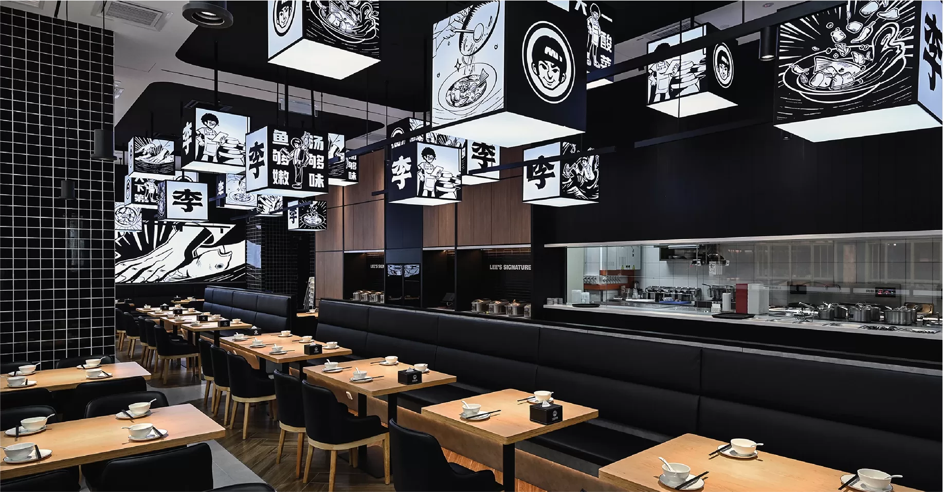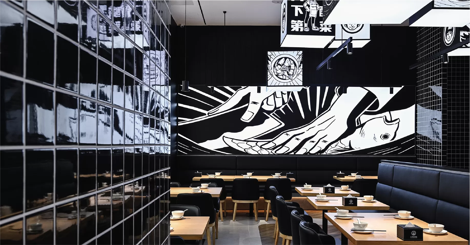 Venturing into a space where monochromatic dreams come alive. Lee's Signature Fish is more than a dining destination; it's a space that merged the age-old art of comic illustrations with modern interior design.