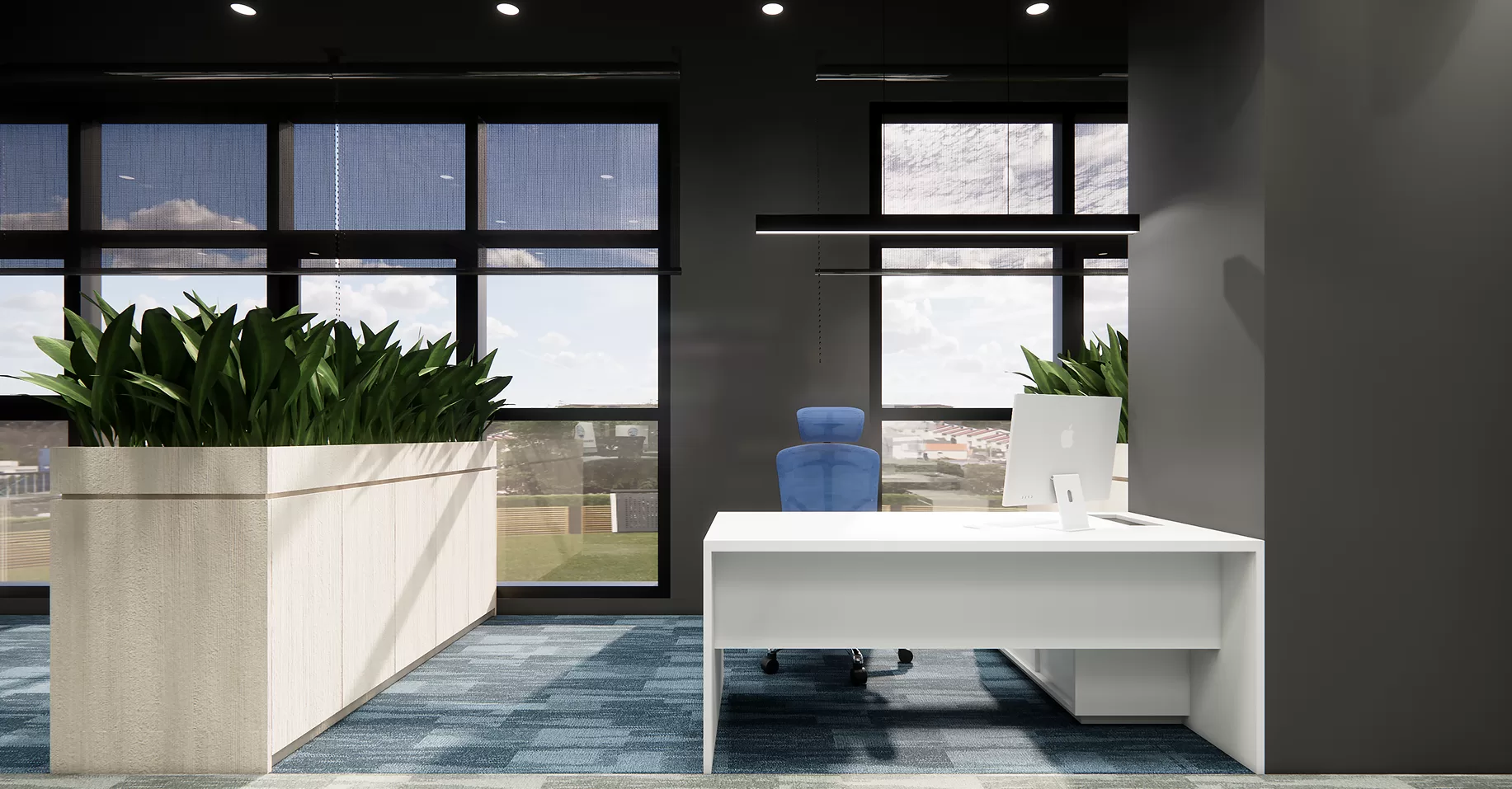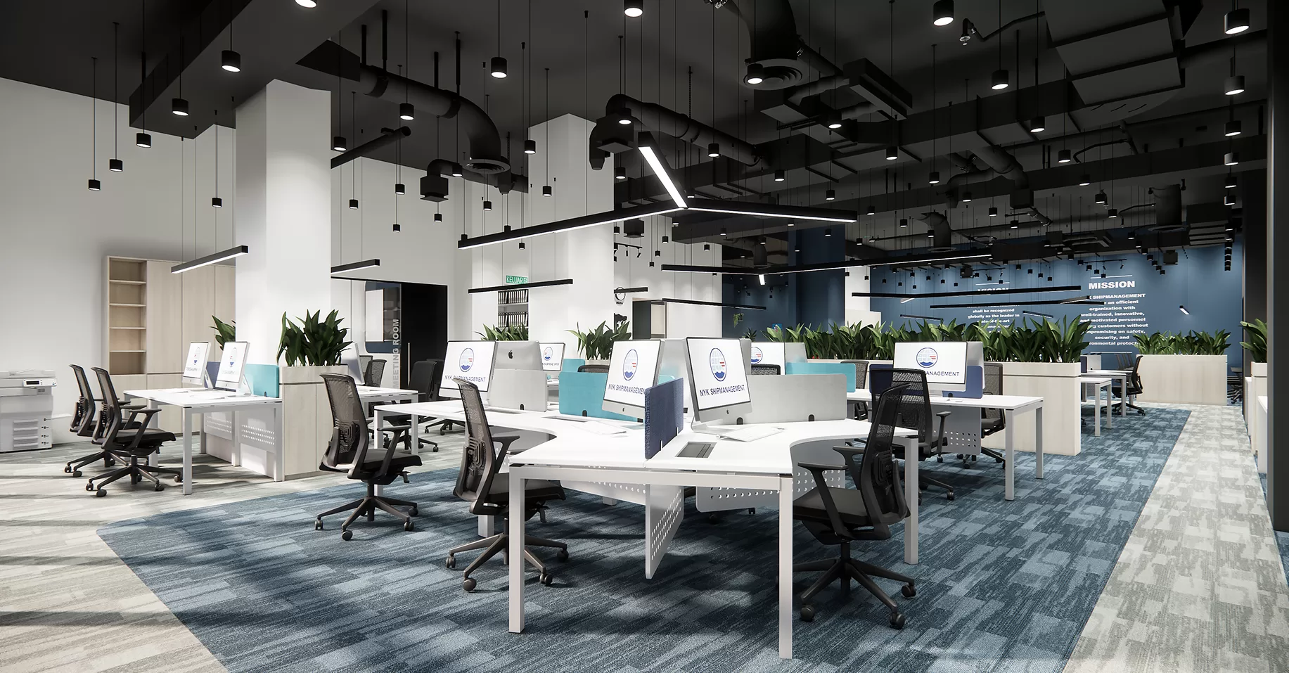Every design decision — from the choice of blue and light wood tones to the strategic use of greenery — serves a deeper purpose: to create a workspace that feels grounded yet inspiring, professional yet personal. It’s a place where employees can anchor their focus, yet still feel the freedom to explore new horizons.