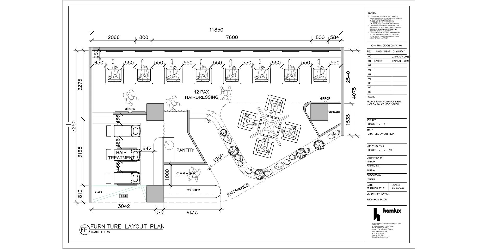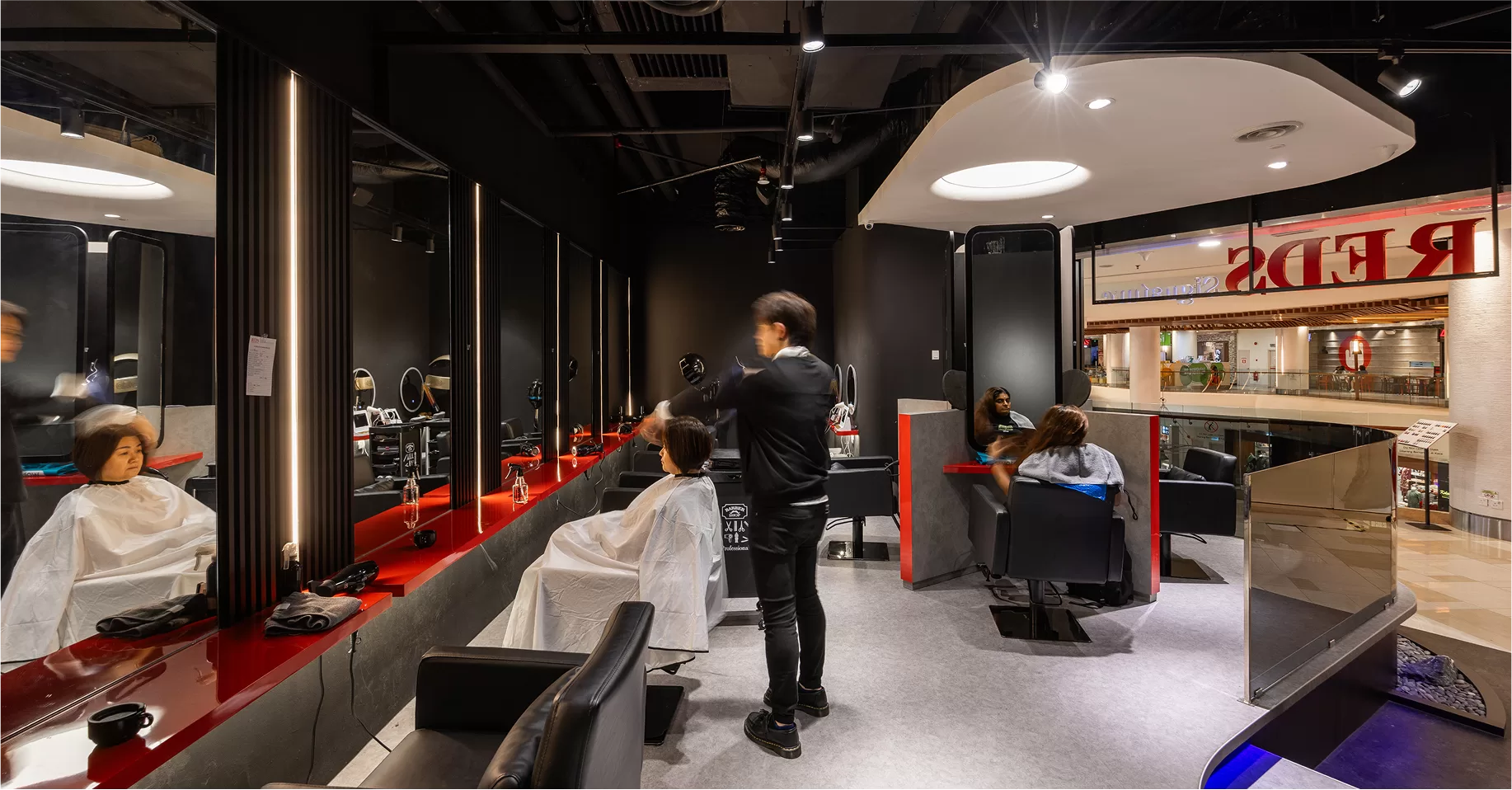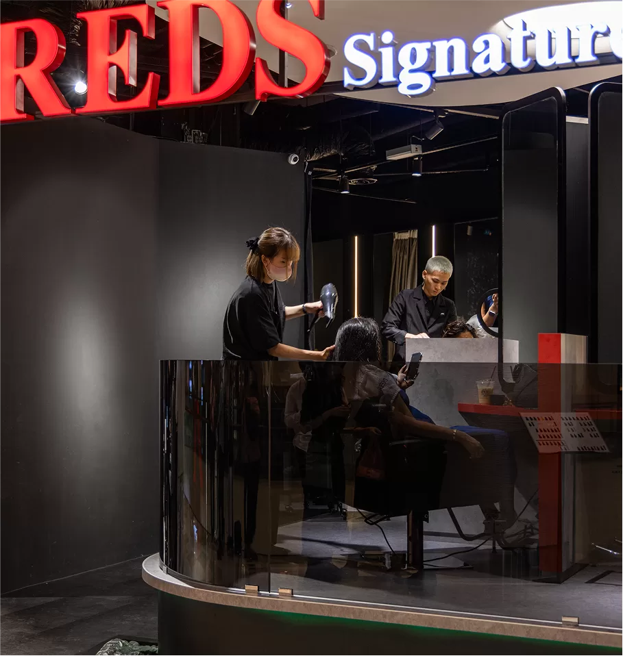 REDS Hair Salon is designed around the concept of the “Art of Hair”—a celebration of creativity, beauty, and craftsmanship in hairstyling. The interior reflects this idea with a sleek, modern look that captures the transformation clients experience during their visit. It’s a space that feels inspiring, stylish, and functional.